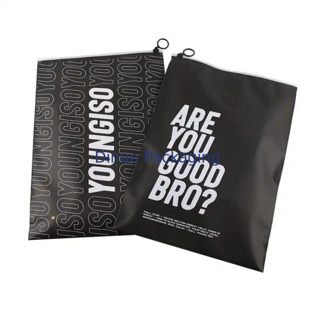 কাস্টম প্রিন্টেড লোগো পোশাক আন্ডারওয়্যার টি-শার্ট প্যাকেজিং CPE ব্ল্যাক প্লাস্টিক স্লাইডার জিপার ব্যাগ